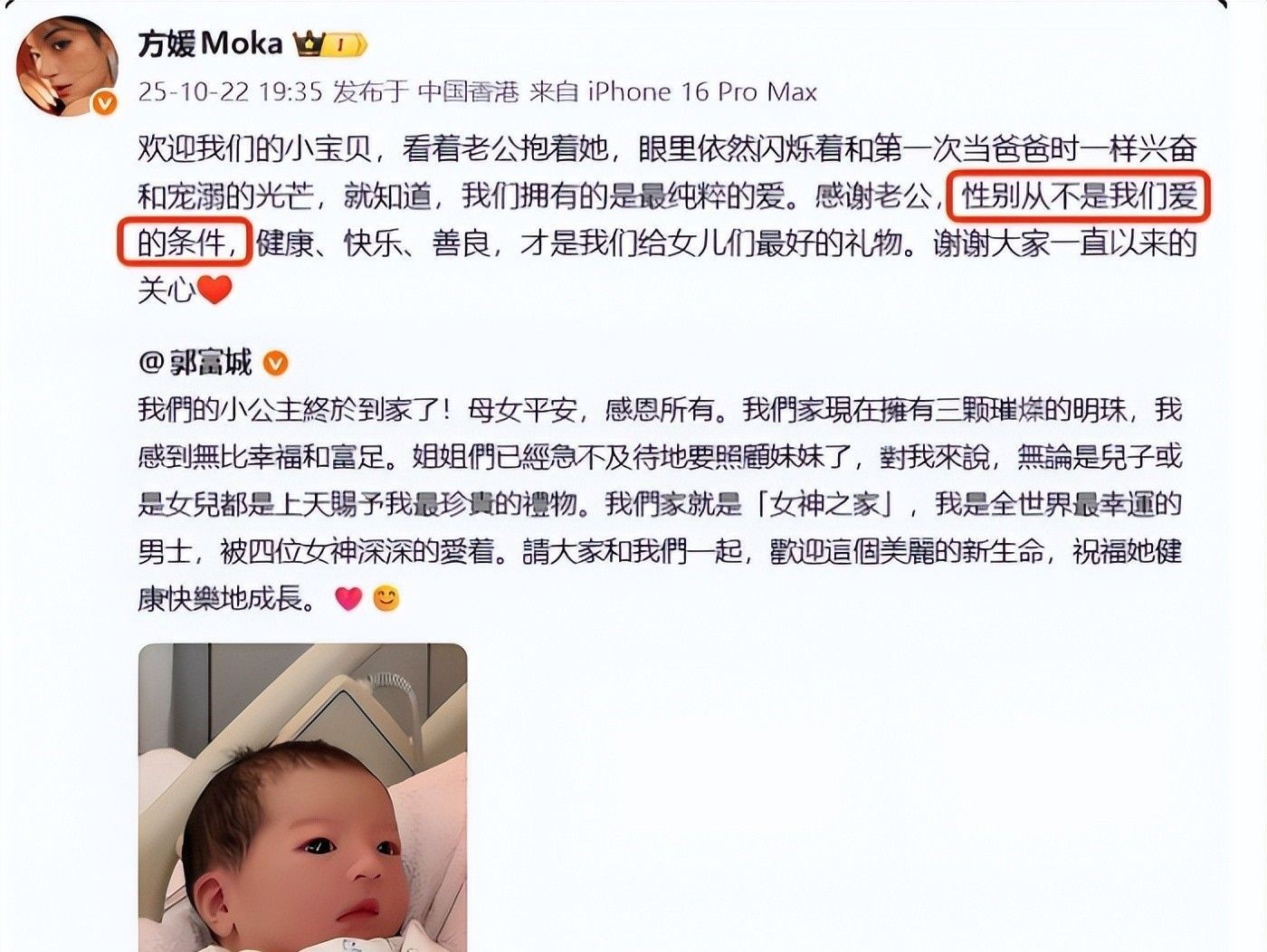 早在今月底,关于方媛三胎性别的误传就曾引发热议。当时香港媒体声称方媛已顺利产下男婴,打破此前“只生女儿”的传言,消息迅速传播,不少粉丝信以为真,纷纷送上贺词。