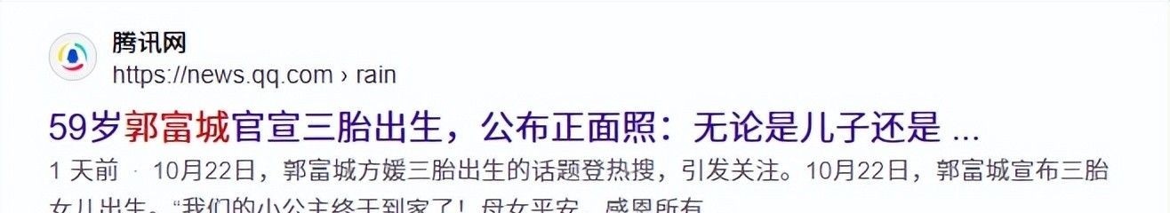 1.腾讯网:59岁郭富城官宣三胎出生,公布正面照:无论是儿子还是女儿都是最珍贵的礼物